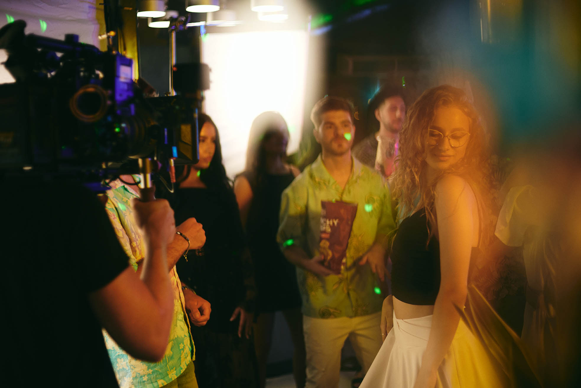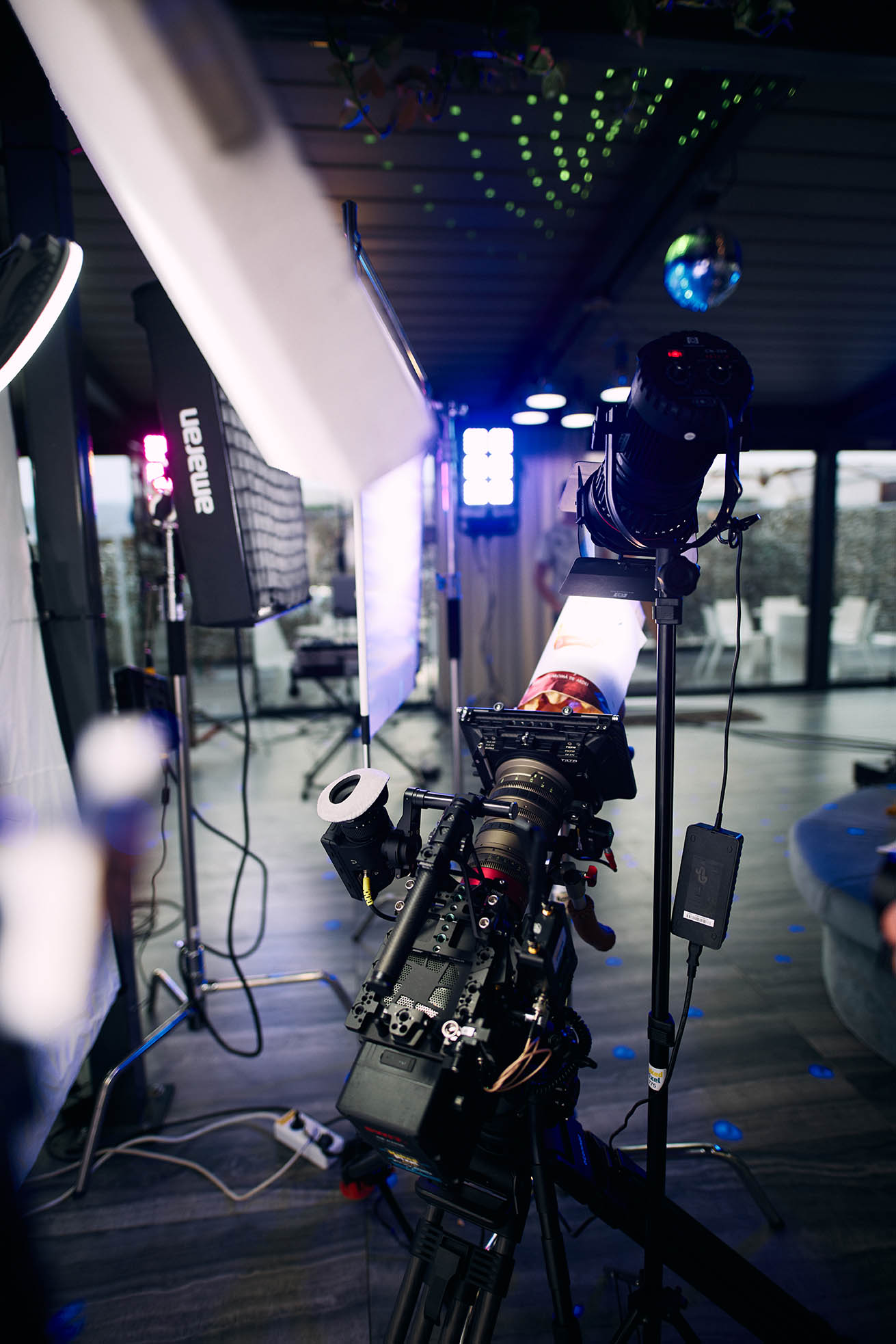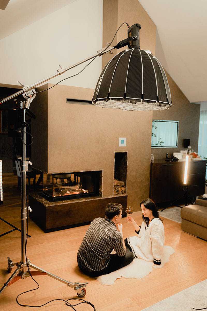 The scope of the shoot meant managing a full cast of actors and extras, a choreographed party sequence, live music cues, and fast lighting resets. Our team scaled up with dedicated departments for art direction, camera movement, set decoration, and crowd management. From blocking talent to syncing background action, the choreography behind the camera was just as precise as what played out in front of it. It was a production that demanded energy and focus from everyone involved—and thanks to the professionalism of both cast and crew, we stayed perfectly on schedule.