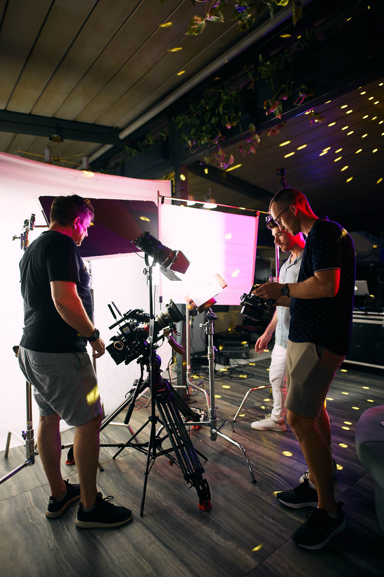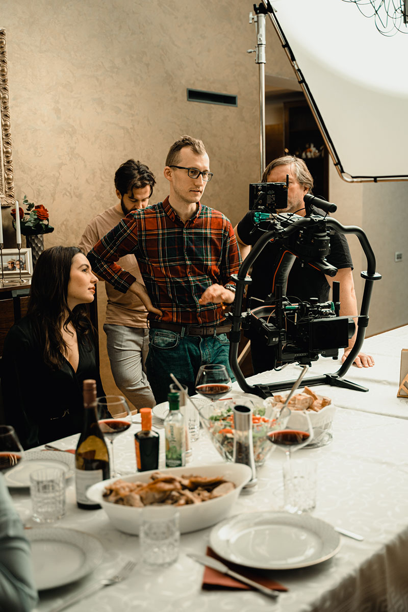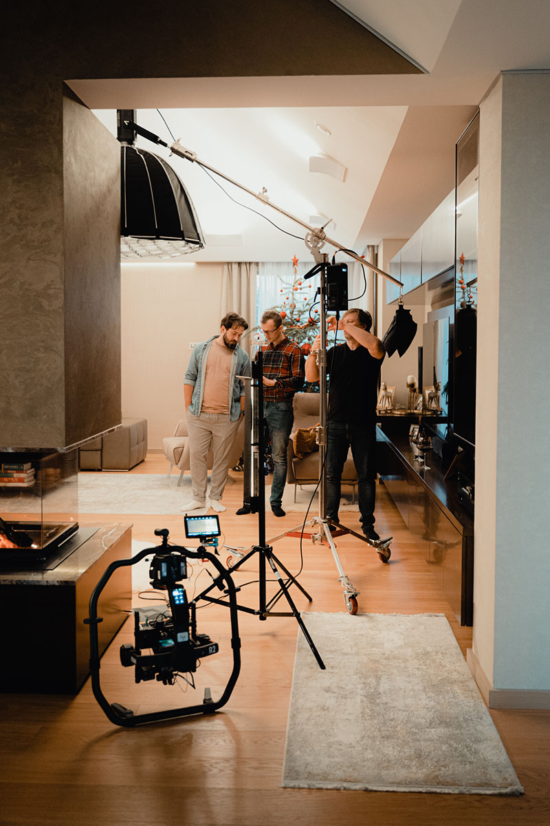 The scope of the shoot meant managing a full cast of actors and extras, a choreographed party sequence, live music cues, and fast lighting resets. Our team scaled up with dedicated departments for art direction, camera movement, set decoration, and crowd management. From blocking talent to syncing background action, the choreography behind the camera was just as precise as what played out in front of it. It was a production that demanded energy and focus from everyone involved—and thanks to the professionalism of both cast and crew, we stayed perfectly on schedule.